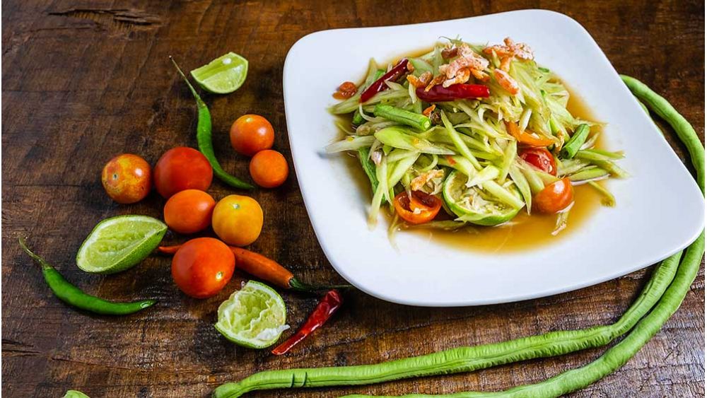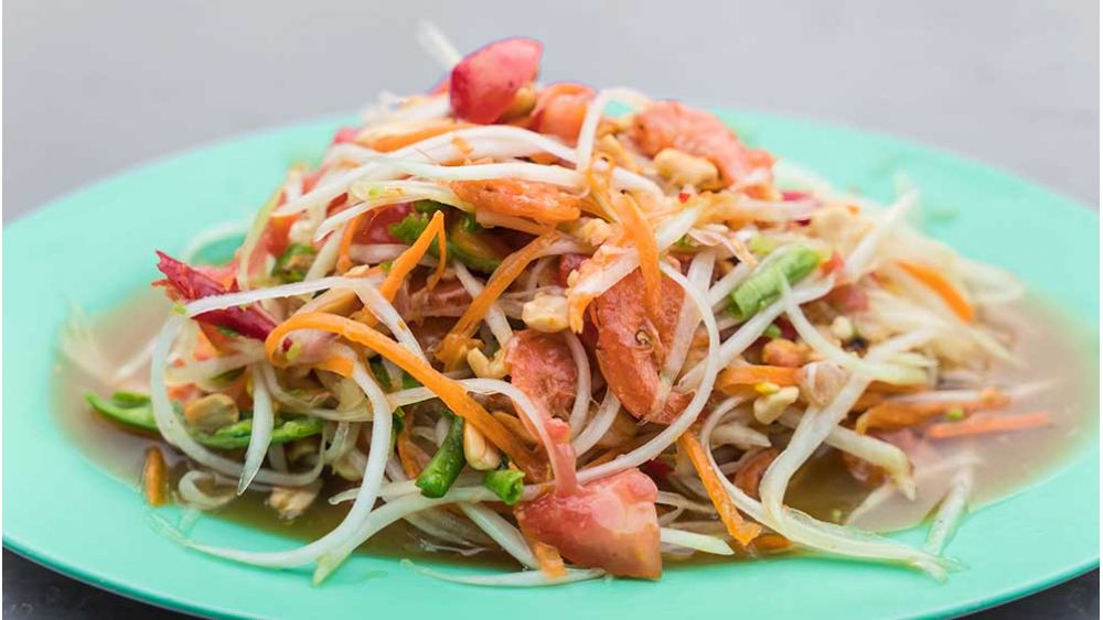 Water Place the cabbage in a large bowl. Arrange the cucumbers, edamame, carrots, bell peppers and peanuts on top. Sprinkle with cilantro.